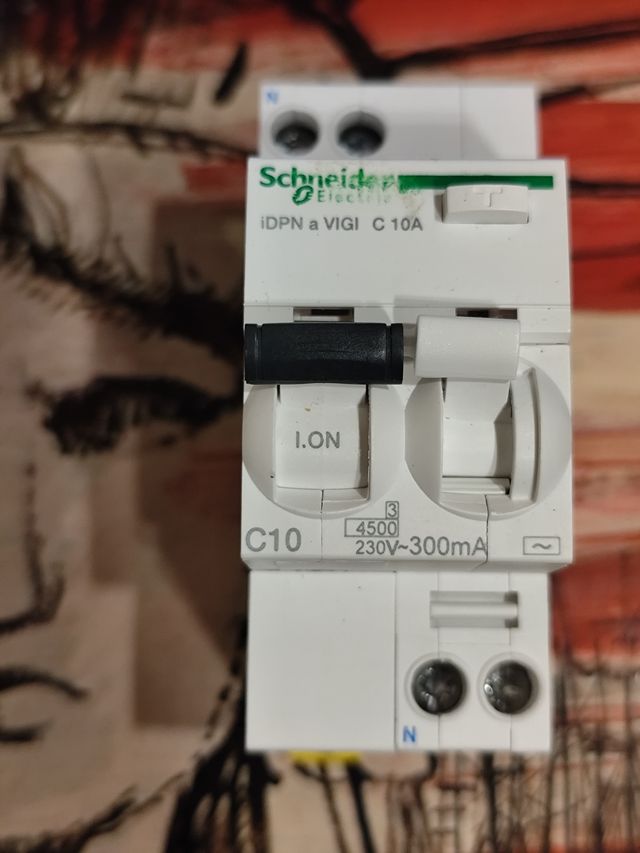Interruptor automático de la marca Schneider Electric. - Modelo: iDPN a VIGI. - Intensidad: C10A. - Sensibilidad: 300mA. - Tensión: 230V.
