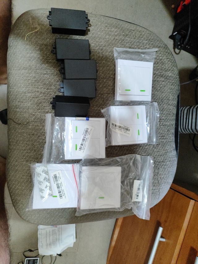 Detalles del productoVendo 5 interruptores inalámbricos. Son nuevos y vienen en sus bolsas originales. Incluyen 5 cajas negras, receptor para su instalación.