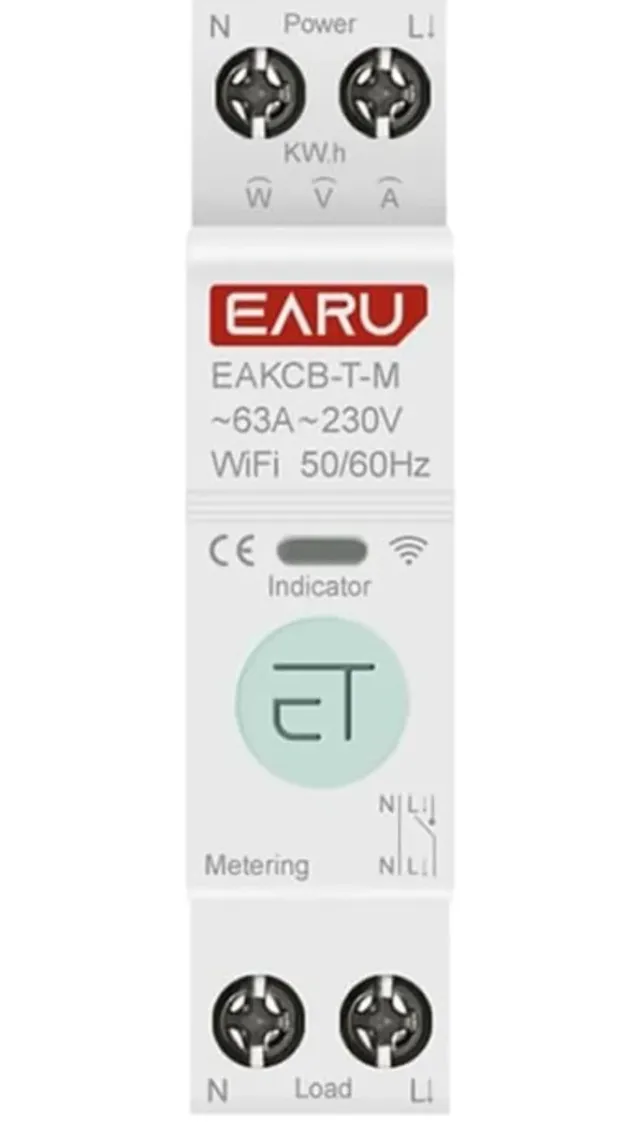 Detalles del productoInterruptor automático inteligente EARU EAKCB-T-M con conexión WiFi. Permite controlar y monitorizar el consumo eléctrico.