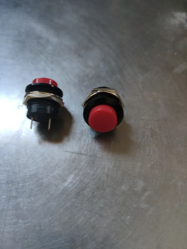 Pack de dos interruptores de botón pulsador momentáneo SPST. - Color: Rojo - Tipo: SPST (Single Pole Single Throw) - Acción: Momentáneo CA 6A/125V. 3A/250