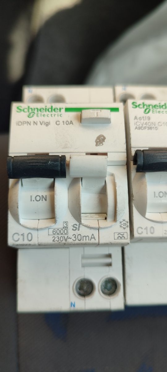 Interruptor automático de la marca Schneider Electric. - Modelo: iDPN N Vigi. - Intensidad: C 10A. - Tensión: 230V~. - Sensibilidad: 30mA.