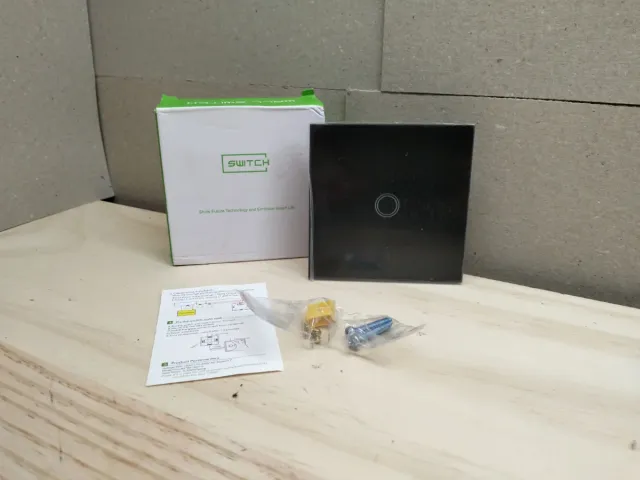 Interruptor táctil de diseño moderno en color negro. Incluye caja y accesorios. - Panel frontal liso. - Indicador luminoso.