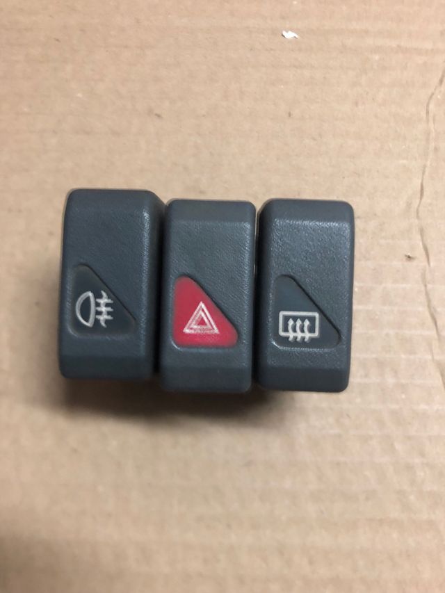 Conjunto de interruptores para Renault Clio 1.8 16v. - Interruptor de luces antiniebla. - Botón de luces de emergencia. - Mando de desempañado trasero.