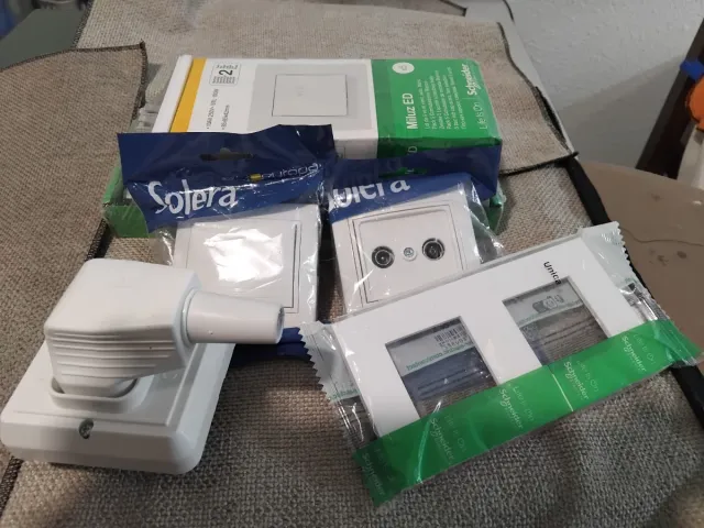 Detalles del productoLote de interruptores y tomas de TV de la marca Schneider, todos ellos sin abrir.