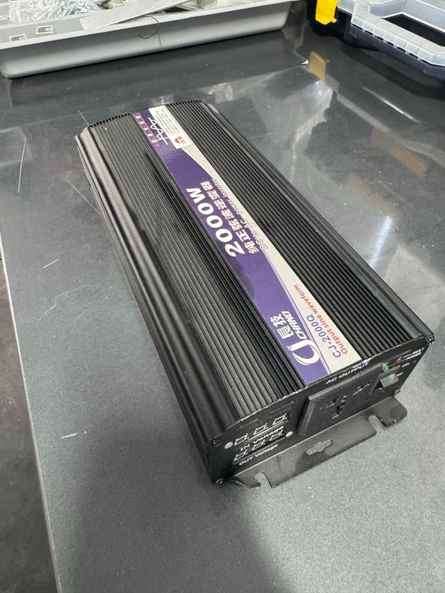 Inversor de corriente de 2000W con salida de onda sinusoidal pura. - Modelo: CJ-2000Q. - Entrada DC a Salida AC. - Pantallas digitales para voltaje de entrada y salida.