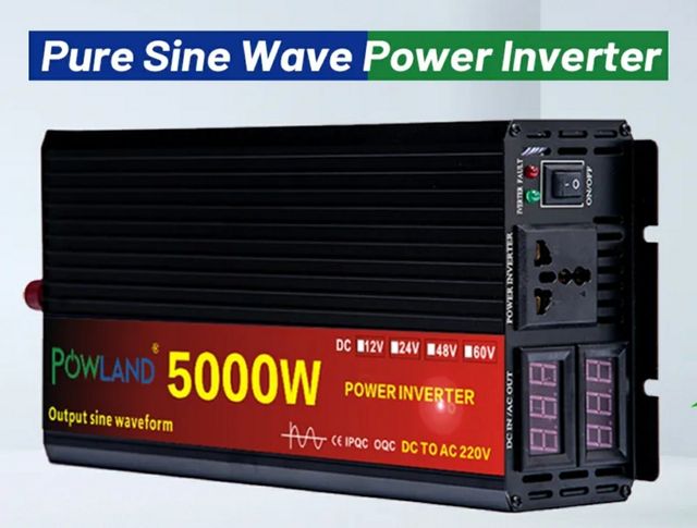 Inversor convertidor de 12v a 220v 5000w de potencia maxima ONDA SINUSOIDAL PURA.
