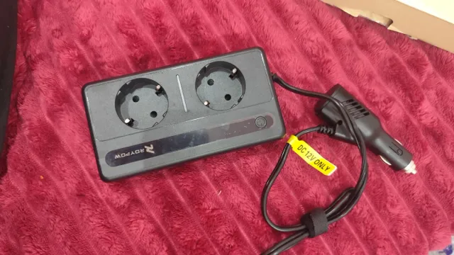 Adaptador de corriente para coche de la marca ROYPOW. - Dos enchufes tipo Schuko. - Conexión a toma de mechero de 12V. - Indicador LED.