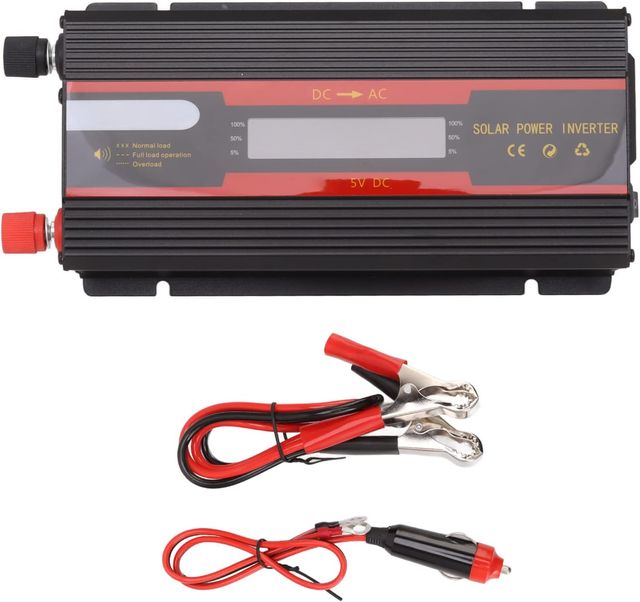 Inversor de Energía Solar Universal de Doble Voltaje 12V 24V‑220V para Coche con Pantalla LCD, Interruptor de un Botón