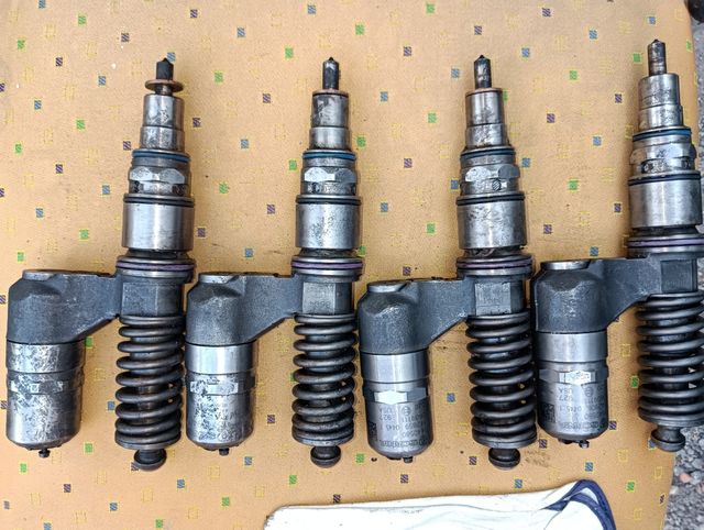 Detalles del productoConjunto de cinco inyectores bomba diésel.