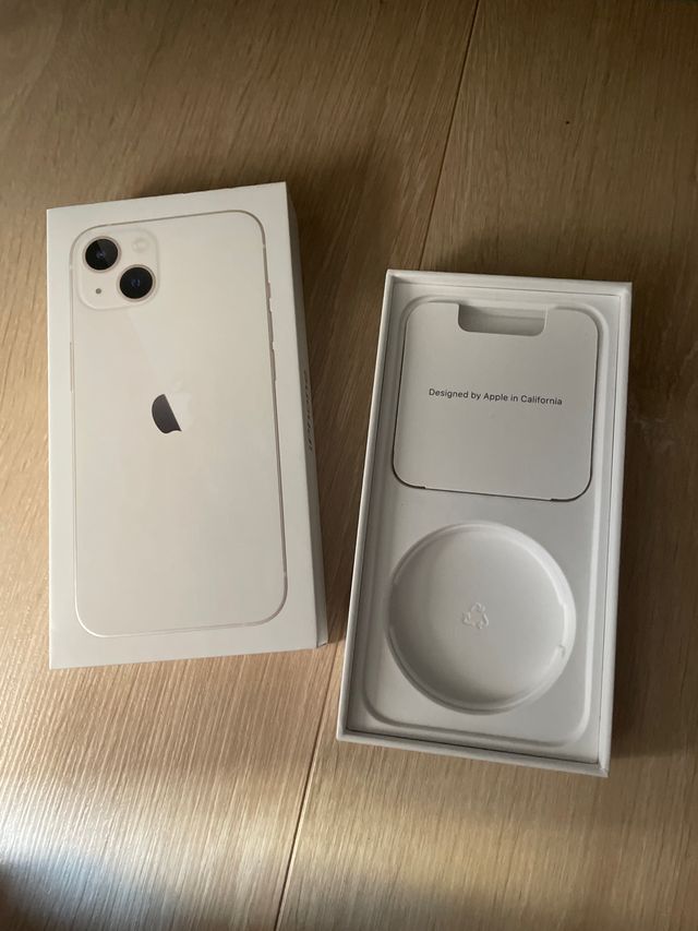 Vendo caja de iPhone 13, nueva y sin abrir. Es de color blanco y está en perfecto estado. - Caja original Apple. - Incluye el soporte interior para el teléfono.
