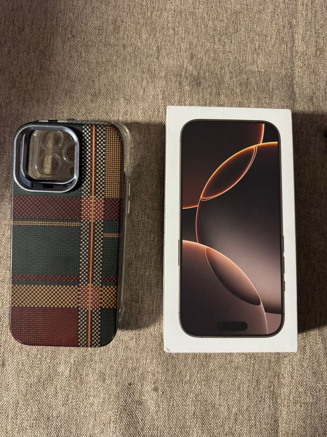 iPhone 16 Pro con funda a cuadros