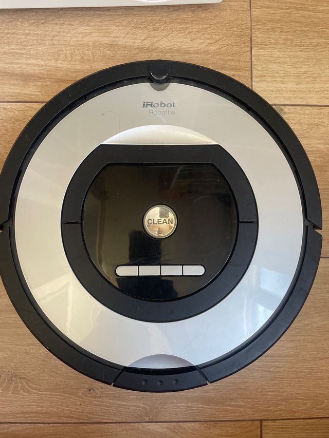Robot aspirador iRobot Roomba. - Diseño redondo y compacto. - Botón CLEAN para iniciar la limpieza. - Indicadores luminosos.