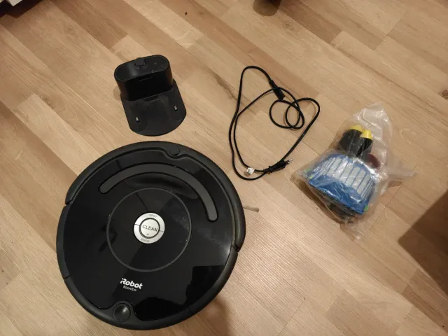Robot aspirador iRobot Roomba 671 en color negro. - Base de carga. - Cable de alimentación. - Piezas de repuesto.