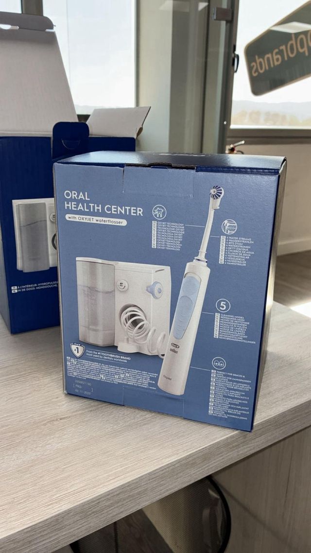 Detalles del productoIrrigador bucal eléctrico Oral-B Oxyjet para una limpieza profunda.
