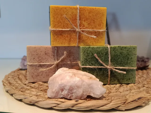 jabones artesanales hechos a mano. - Jabón de miel y canela - Jabón de cúrcuma y aceite esencial de naranja - Jabón de aceite de Romero y Spirulina Se venden por separado