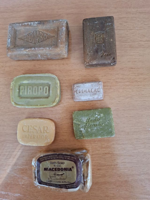 En buen estado,diferentes pastillas de jabón pequeñas sin envoltorio.De colección. Marcas:Tombo,piropo,césar imperator,cremacao, heno de previa...Entrega en Leganés. Hago envíos