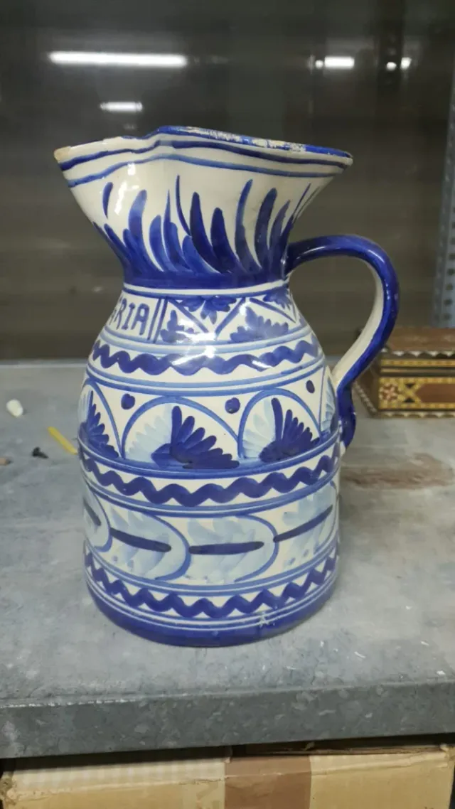 Detalles del productoJarra de cerámica con un diseño tradicional en azul y blanco. Perfecta para servir sangría o cualquier otra bebida.