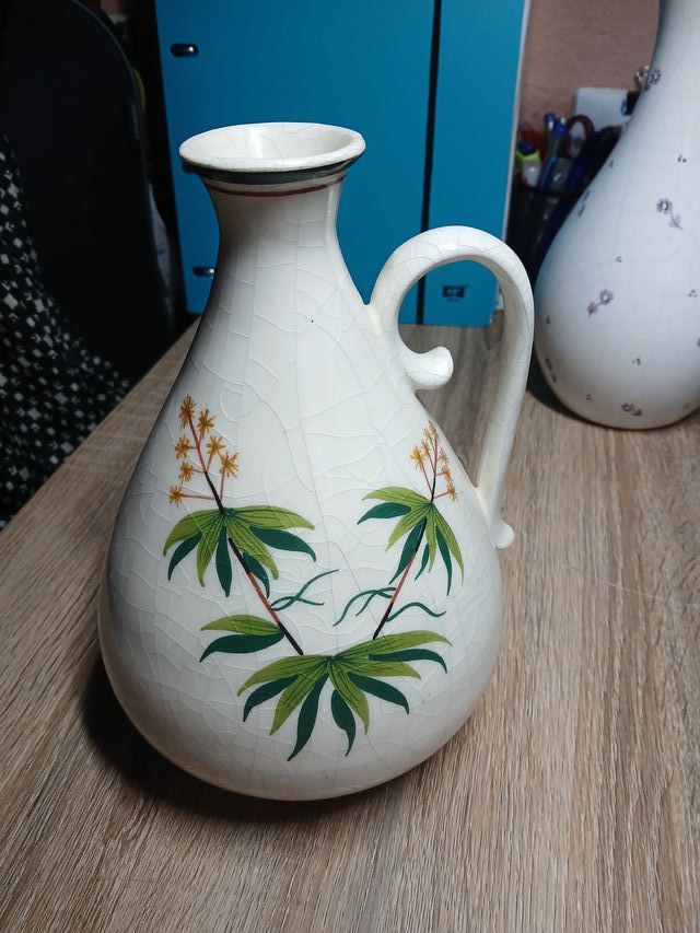 Jarra cerámica vintage flores craquelada