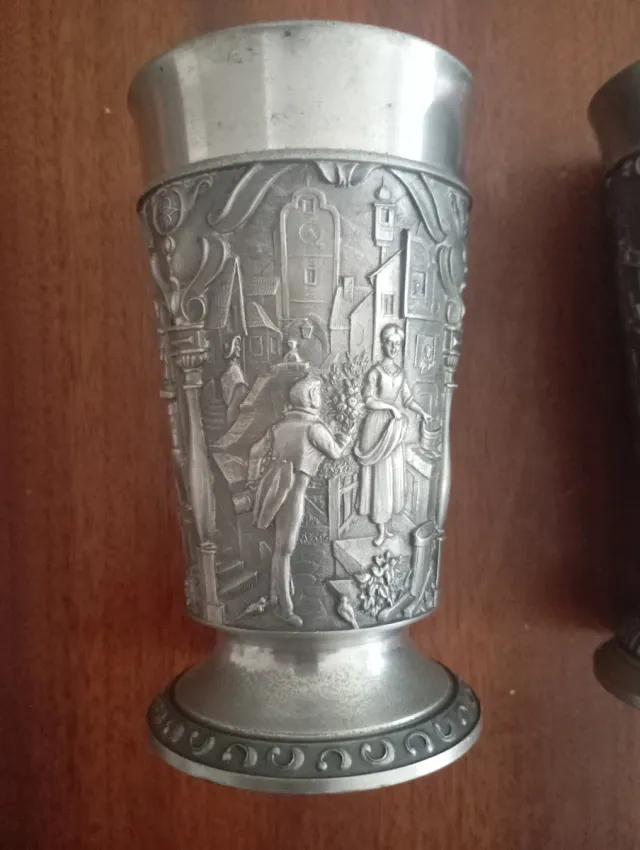 Jarras de cerveza de metal, alemanas con grabados temáticos. Años 80. Coleccionismo. Entrega en mano
