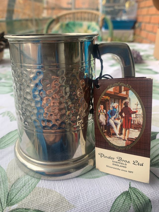 Detalles del productoJarrita de cerveza inglesa de Pinder Bros, bañada en plata.