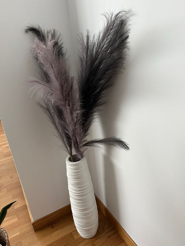 Jarrón blanco alto con plumeros