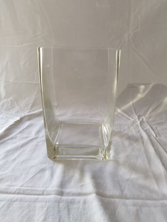 Jarrón cuadrado de cristal.