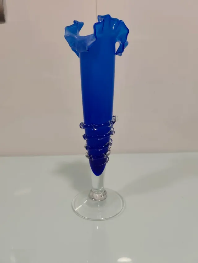 Jarrón de cristal azul cobalto