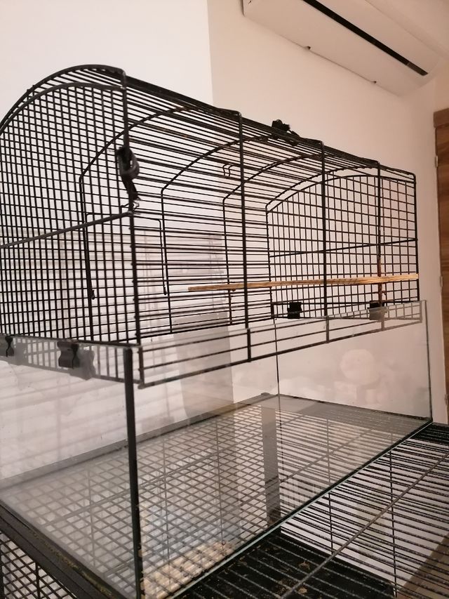 Jaula para roedores con base de madera y dos puertas. Separación entre rejas 1 cm.