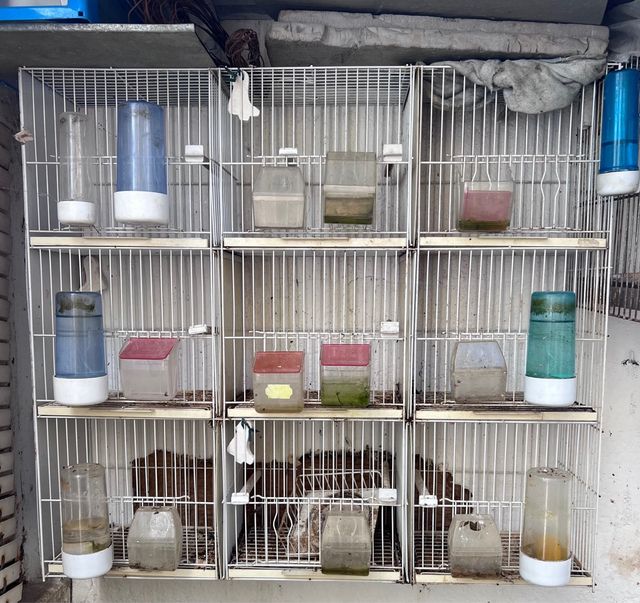 jaula triple para cria de pajaros. con todos los separadores para el celo, comederos y bebederos.