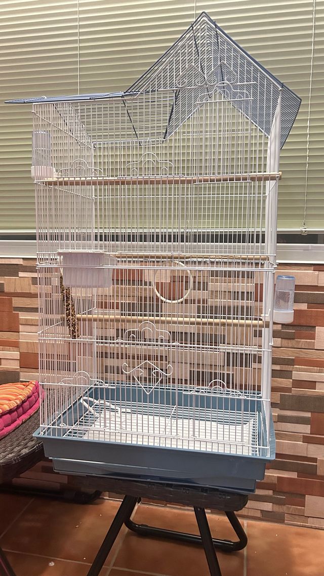 Detalles del productoJaula blanca para pájaros, ideal para mantener a tus mascotas seguras y cómodas.