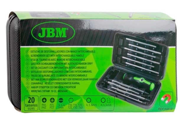 Detalles del productoSet de destornilladores JBM con mango intercambiable.