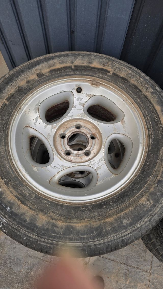 Detalles del productoJeep Wrangler YJ wheels & tyres x4, 16" x 8" came with Jeep purchase. Never tried on vehicle. Buyer collects. Medidas del producto