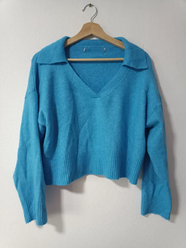Jersey azul cuello pico