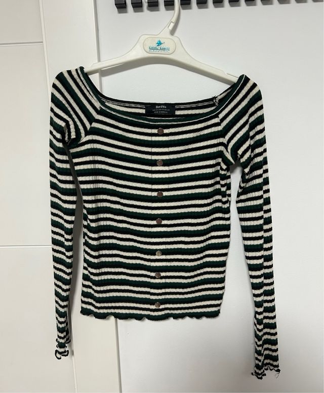 Jersey Bershka Rayas Verde y Blanco Talla XS