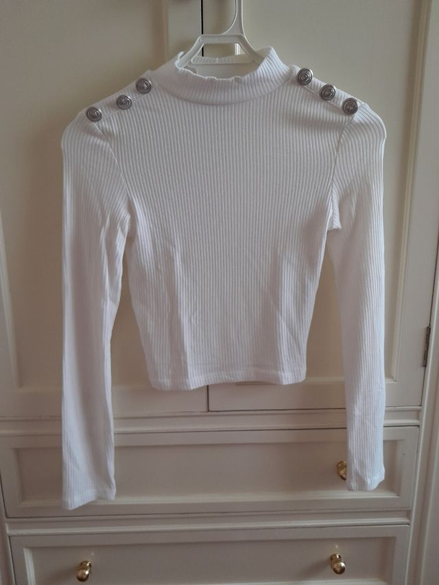 Jersey blanco botones Bershka XS