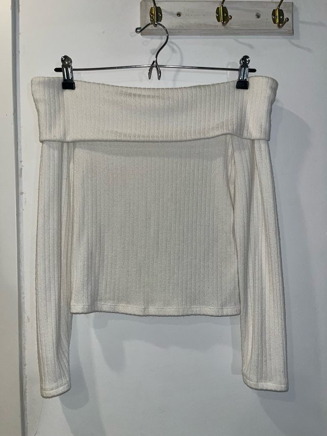 Jersey blanco escotado manga larga