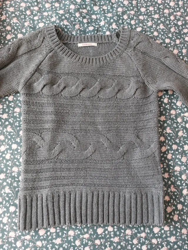 Jersey CAMAÏEU gris trenzado manga larga. 20% lana