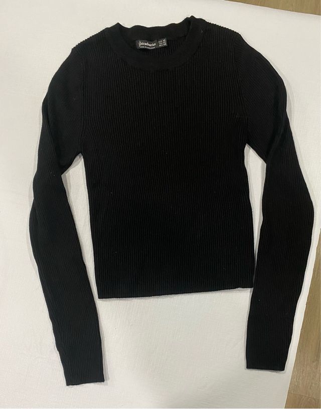 Jersey canalé Stradivarius negro XS