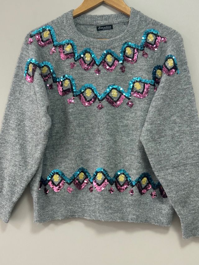 Jersey Castañer gris S mujer lentejuelas
