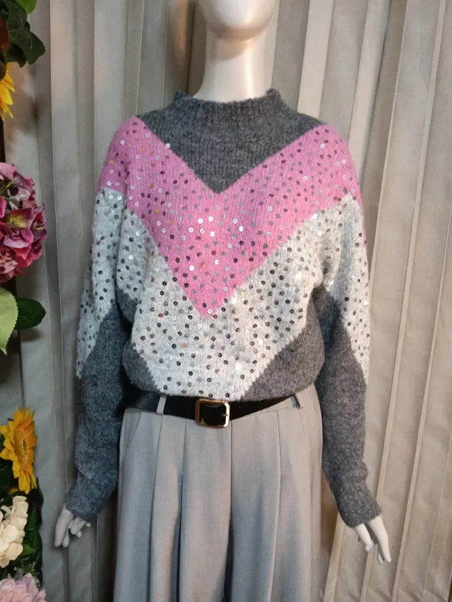 Jersey Chevron Lentejuelas Rosa Gris, talla única