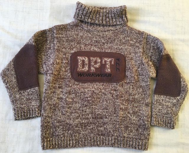 Jersey de cuello alto, niño, talla 6. Marrón mezcla crema. Muy bueno