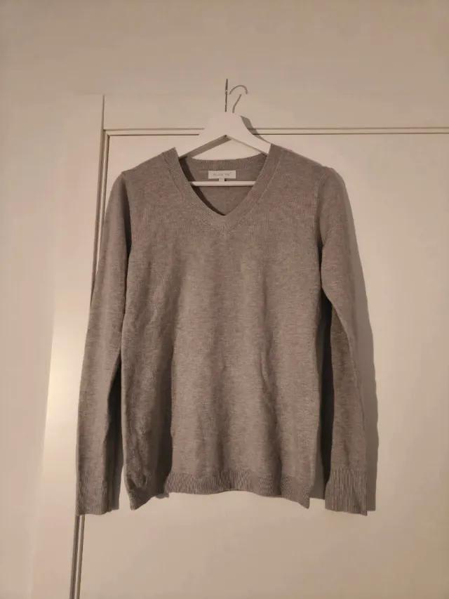 Jersey de punto gris cuello pico