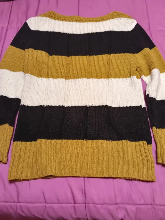 Jersey de punto con diseño de rayas horizontales en varios colores. Talla M, equivalente a una 38-40.