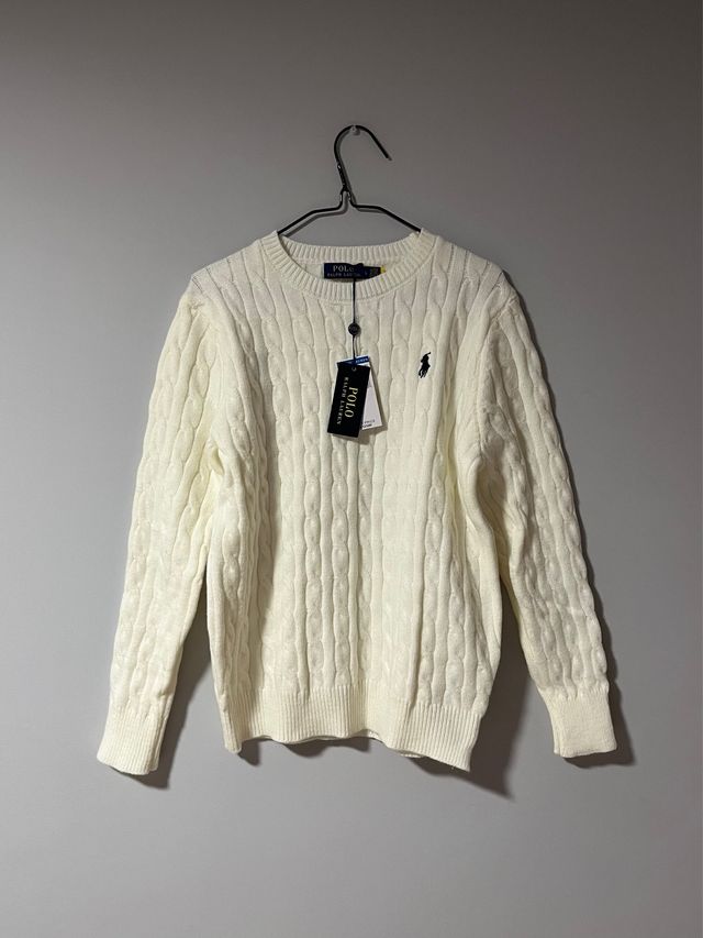 Jersey de punto trenzado blanco Polo Ralph Lauren