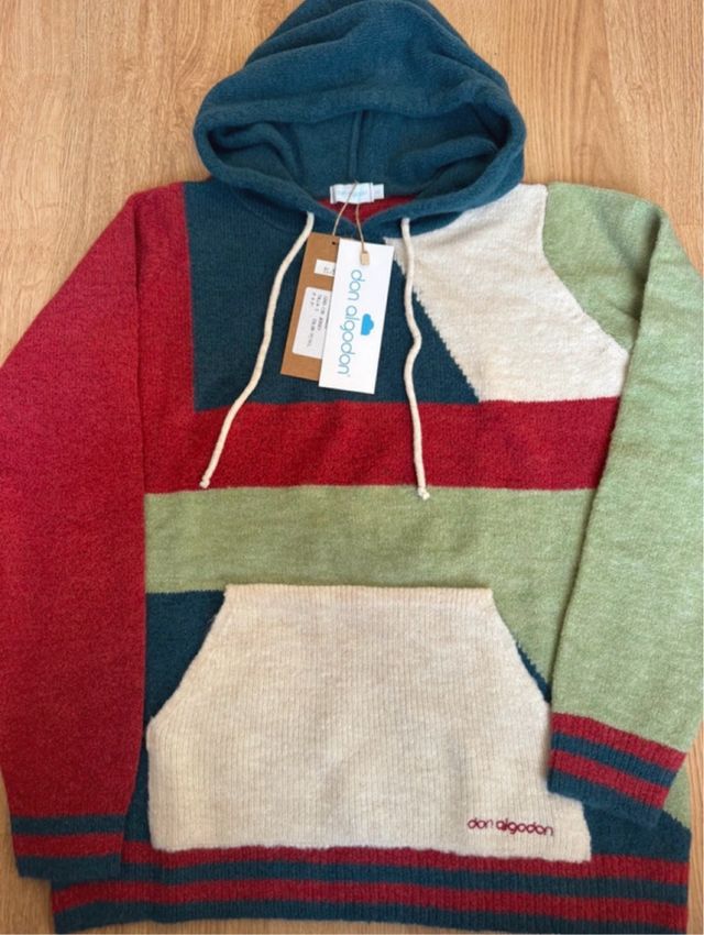 Jersey de punto con diseño de bloques de color, SIN ESTRENAR. - Manga larga. - Capucha. - Bolsillo delantero.
