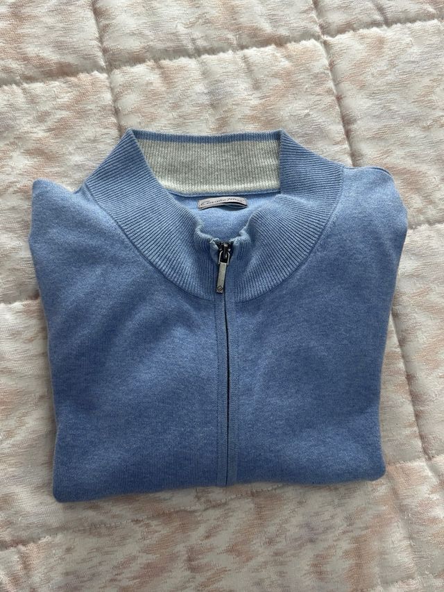 Jersey Emidio Tucci cremallera azul hombre algodón