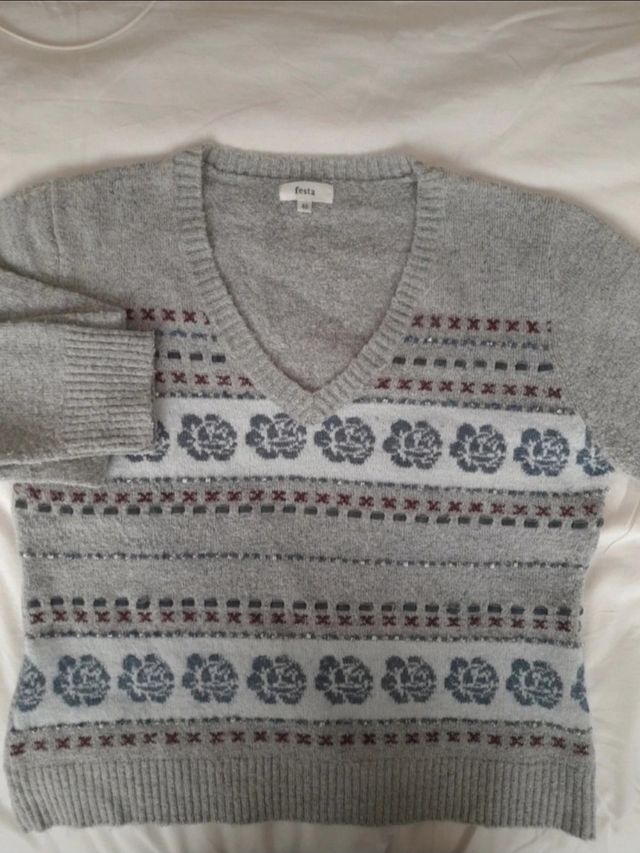 Jersey Festa cuello pico lana gris M