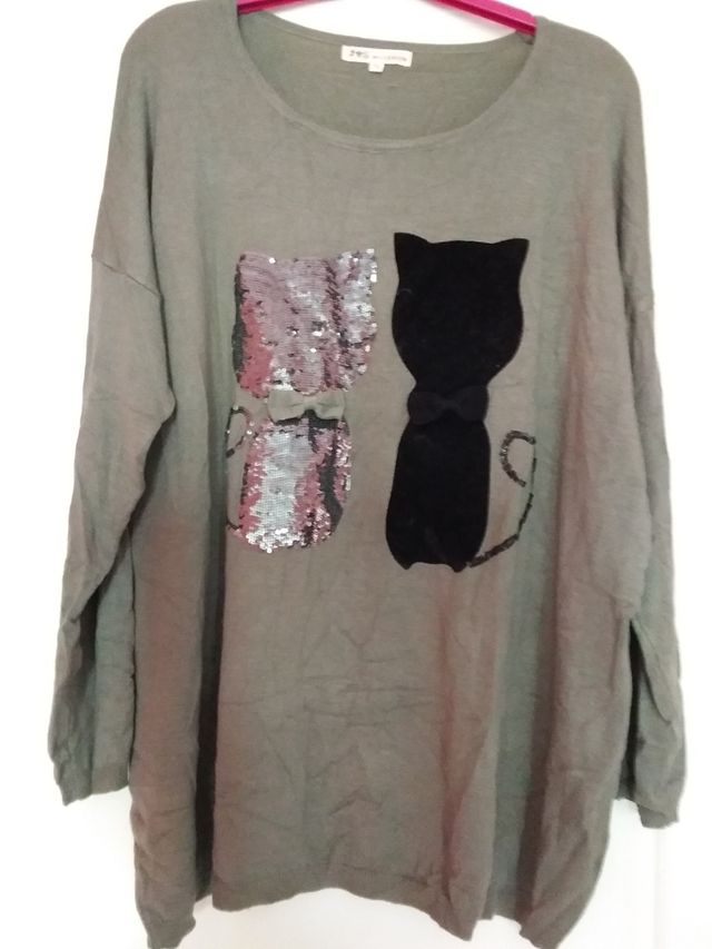 Oferta Jersey fino de gatitos de lentejuelas XL