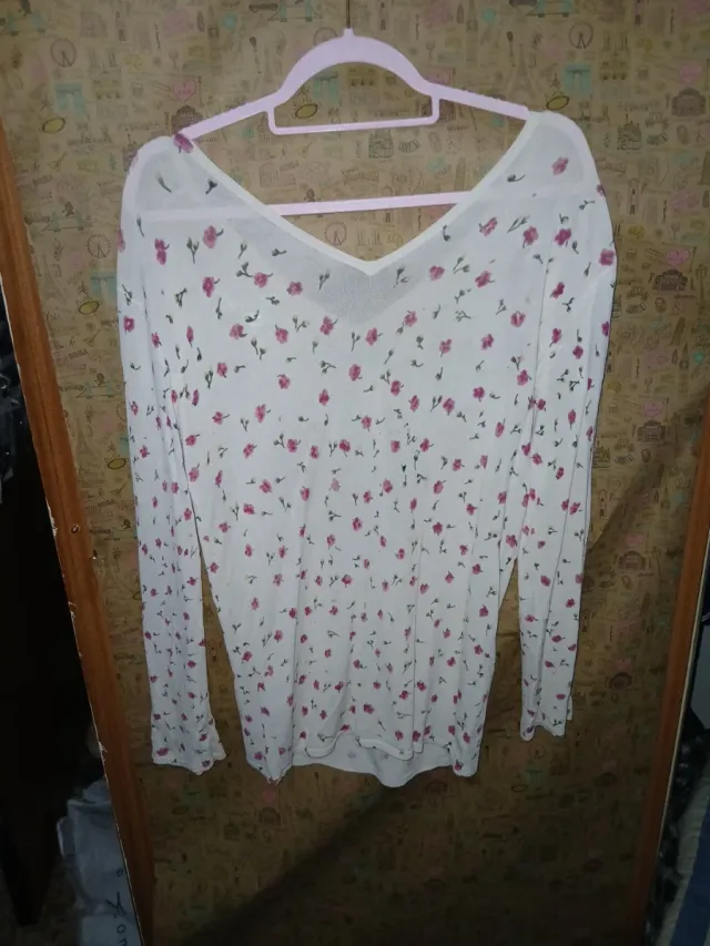 Jersey fino flores rosa y blanco