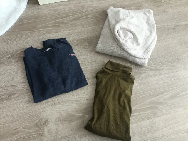 Buen estado · S / 36 / 8 · Hollister · Azul y Verde oliva